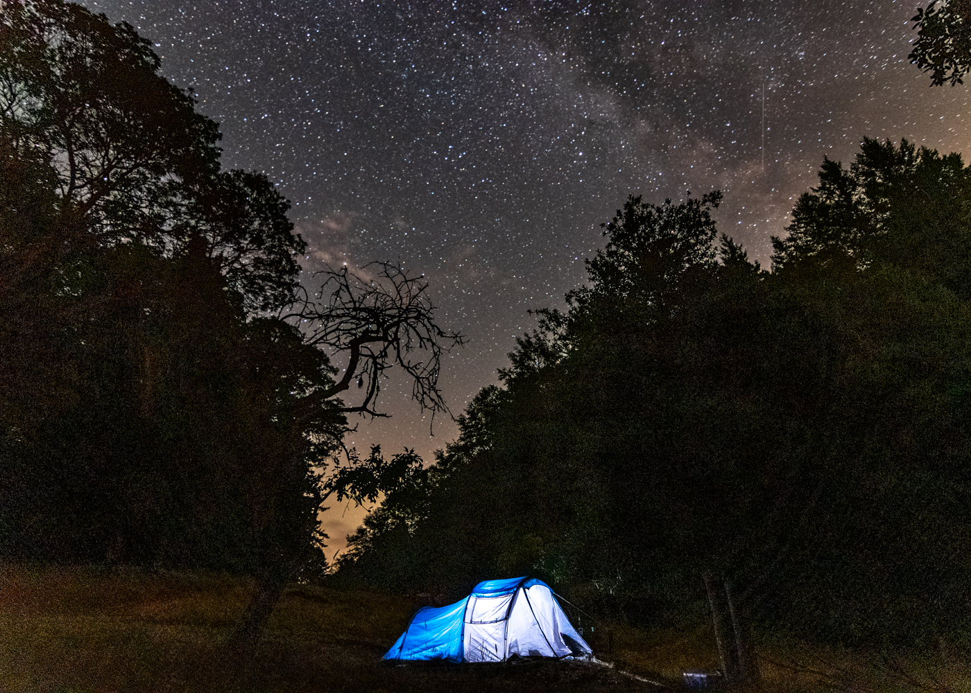 Camping under the stars in Narvaez Bay, Saturna Island, BC.