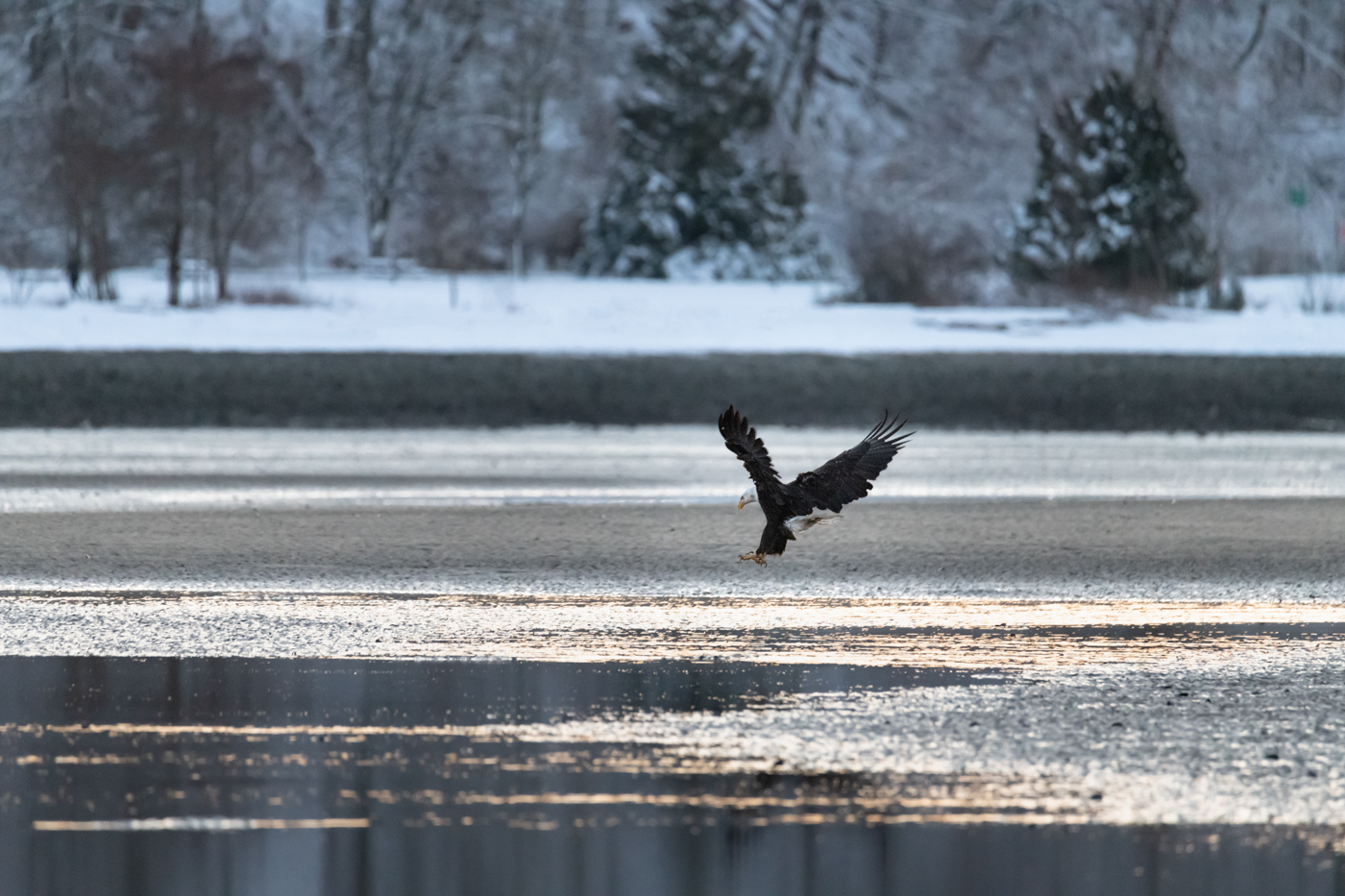 Bald eagle landing on jericho beach